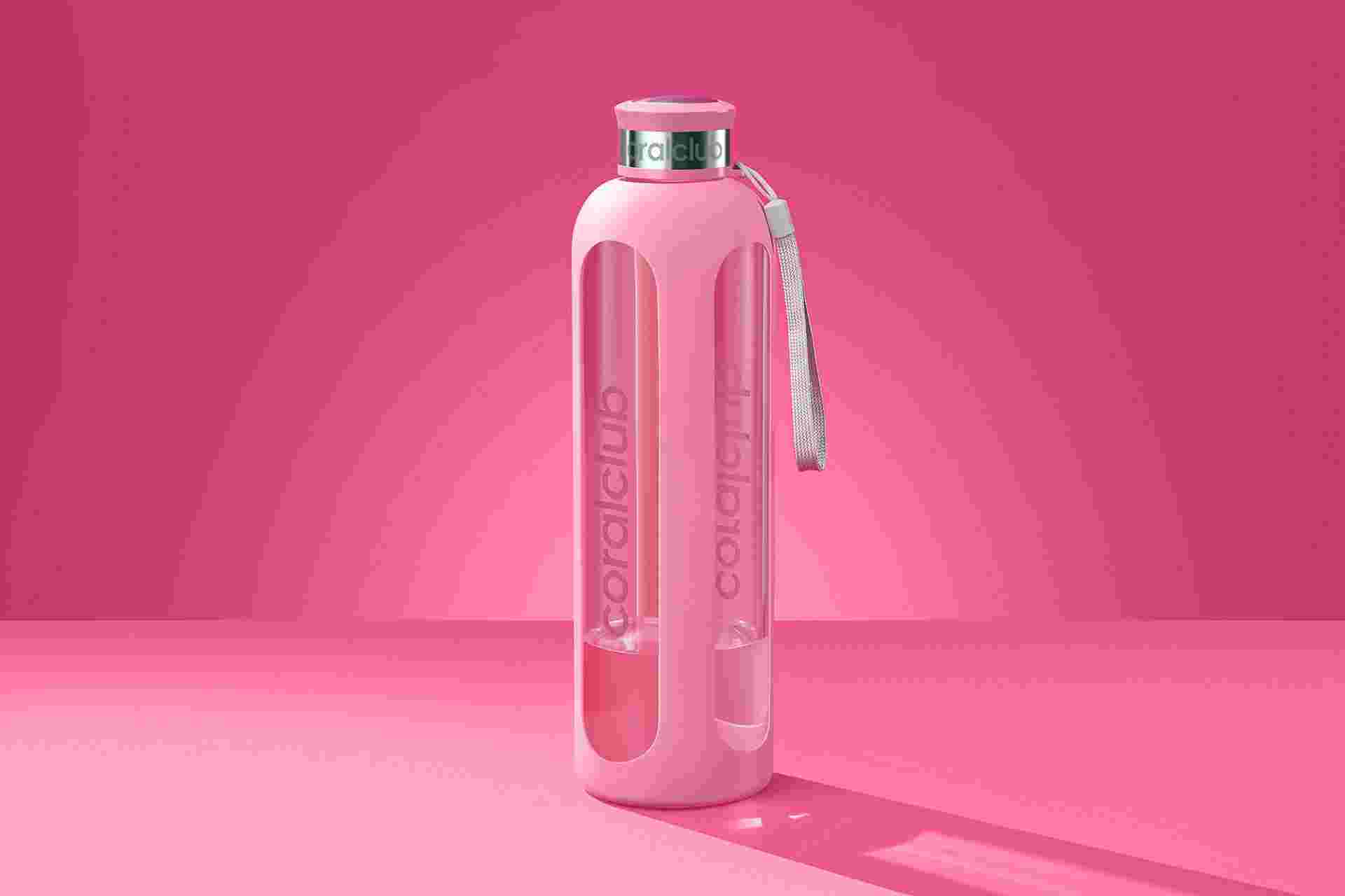 Стъклена бутилка "ClearWater", розова, 1000 мл