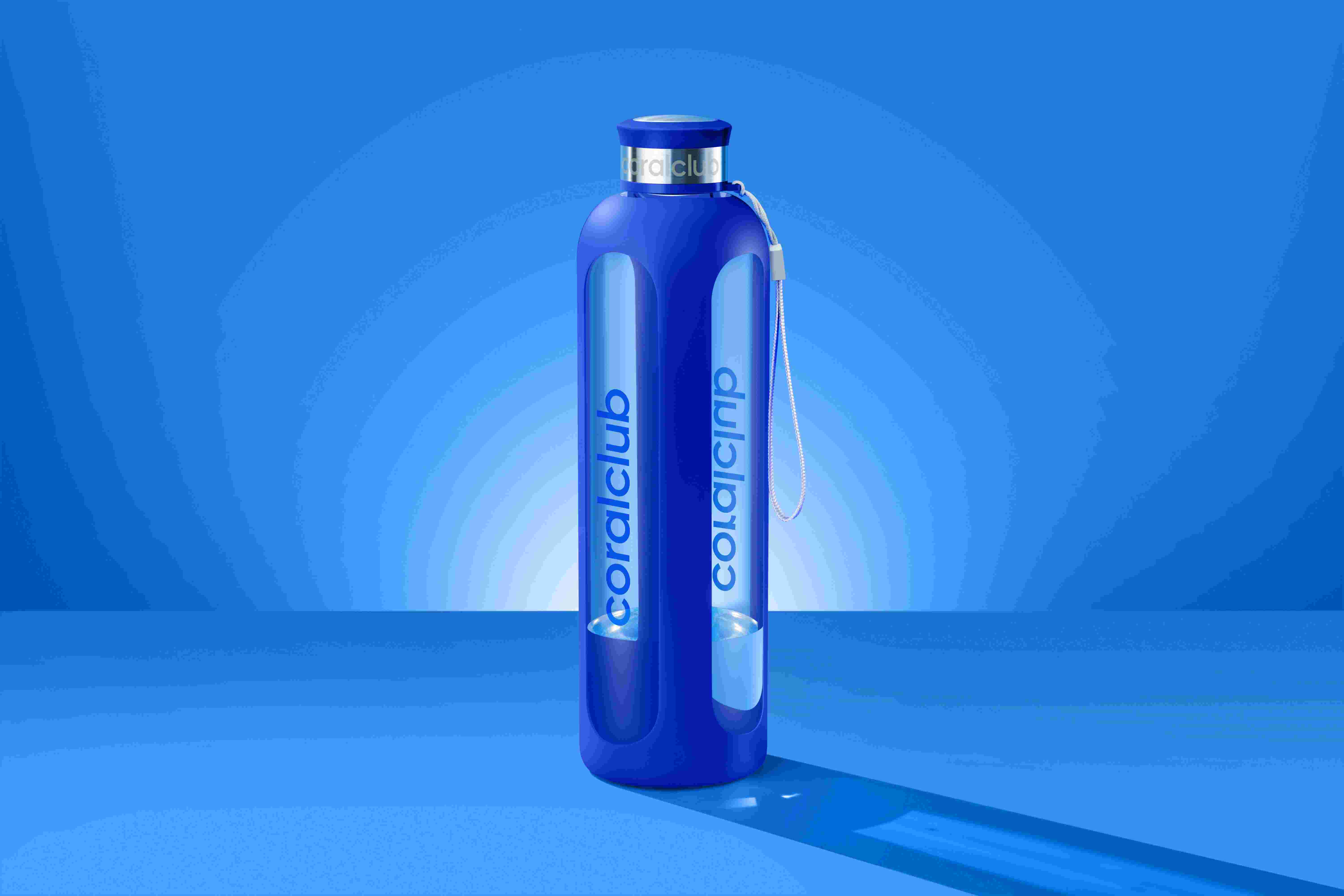 Стъклена бутилка "ClearWater", синя, 1000 мл